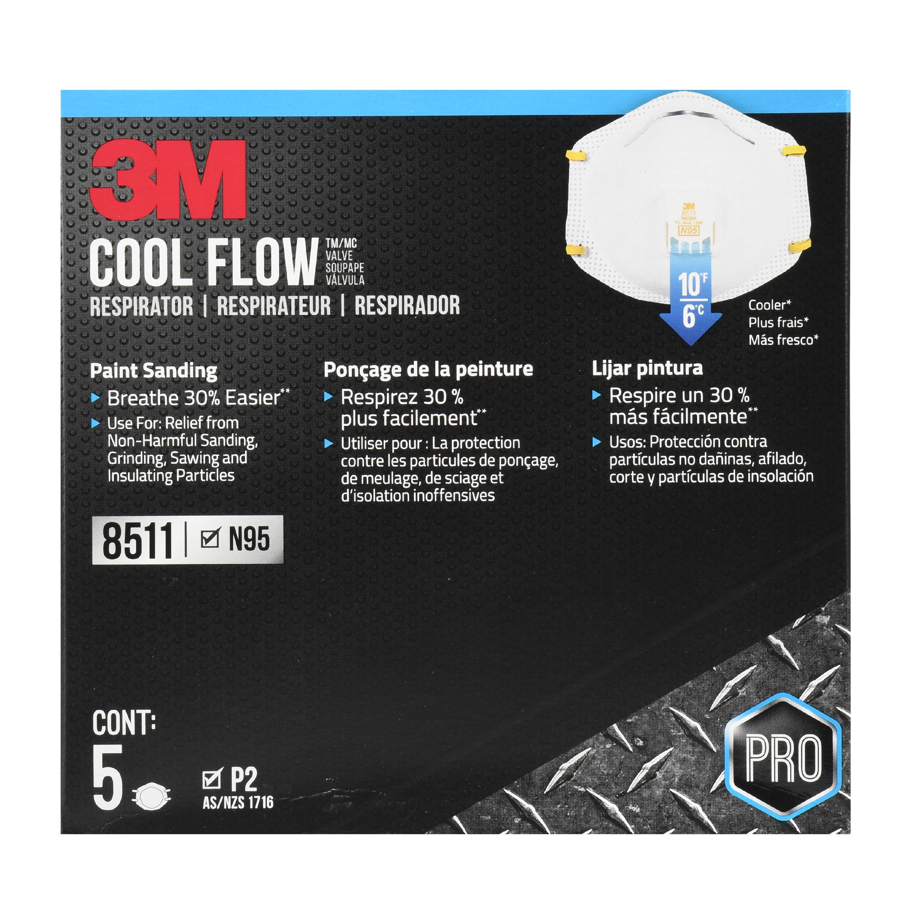 The respirator is designed for use for particles such as those from grinding sanding sweeping sawing bagging or. Part of our Pro Series the 3M 8511 Respirator with Cool Flow Valve is designed with the pro in mind to help bring you protection and comfort. 3M 8511Pa1-2A Paint Sanding Respirator With Cool Flow Valve - Pack Of 2.
