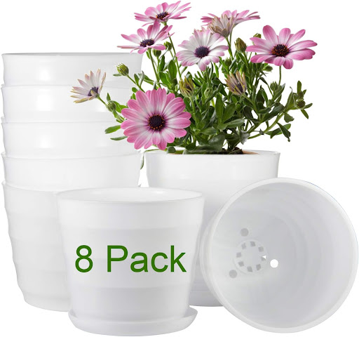 Amazon Com Ehwine 8 2 Inch Flower Plant Pots 6 Pcs Indoor Plastic Planter With Drainage And Tray White Large Planters Fit With Flowers Vegetables Full Depth Outdoor Perfrct For Medium Or Large Size